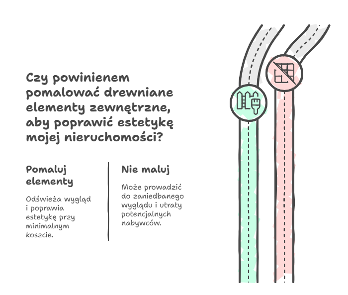 Zadbaj o drewniane elementy, takie jak płoty, pergole czy okna. Jeśli są one stare lub zaczynają się łuszczyć, warto je pomalować, aby nadać im świeży wygląd. Malowanie ogrodzeń czy ram okiennych to stosunkowo niedroga inwestycja, która znacząco poprawia wizualny odbiór całej nieruchomości.