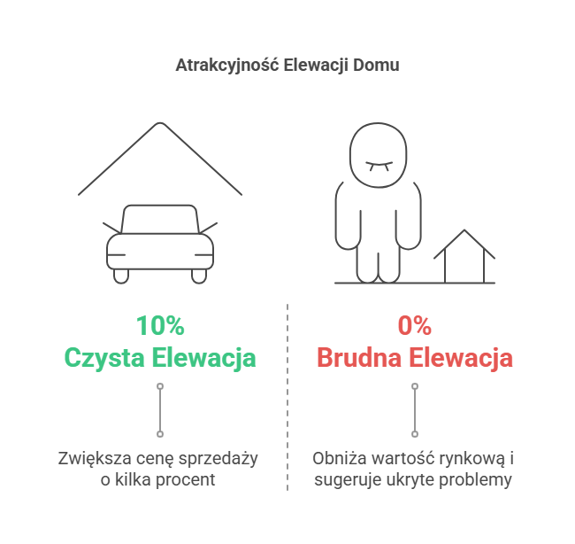 Wyobraź sobie, że jesteś kupującym i oglądasz dwa identyczne domy – jeden z czystą, zadbaną elewacją, a drugi pokryty ciemnymi plamami i mchem. Który budynek zrobi na Tobie lepsze wrażenie? 🤔 Oczywiście ten pierwszy!