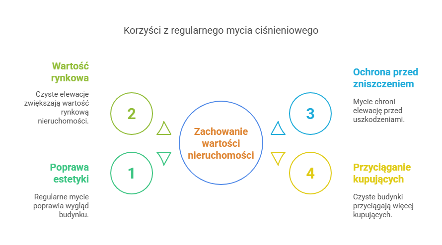 💰 Oszczędność na remontach – regularne czyszczenie zapobiega konieczności kosztownej renowacji elewacji.