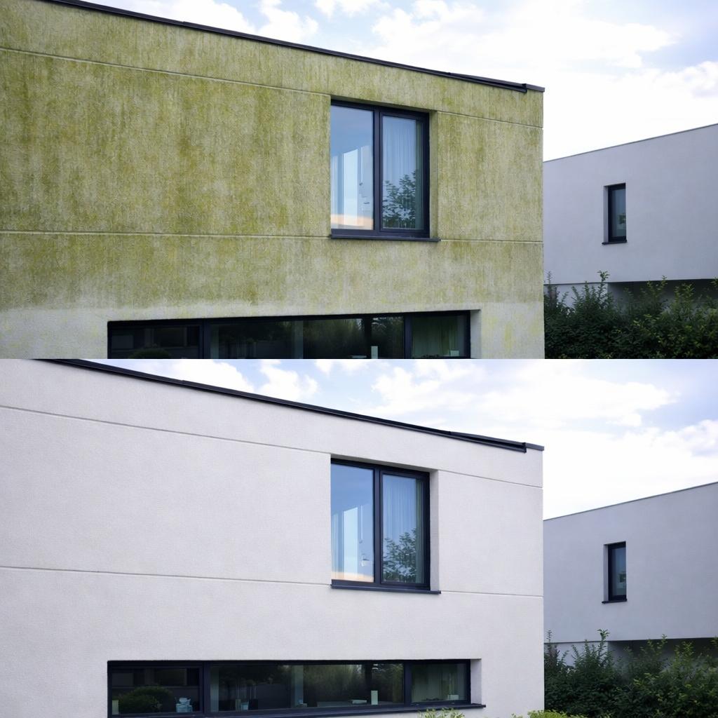 DOKŁADNIE MYJEMY CIŚNIENIOWO ELEWACJĘ , USUWAMY LUŹNE POWŁOKI MALARSKIE ORAZ ODGRZYBIAMY ŚCIANY, ZAPEWNIAJĄC IDEALNĄ PRZYCZEPNOŚĆ DLA NOWEJ FARBY.